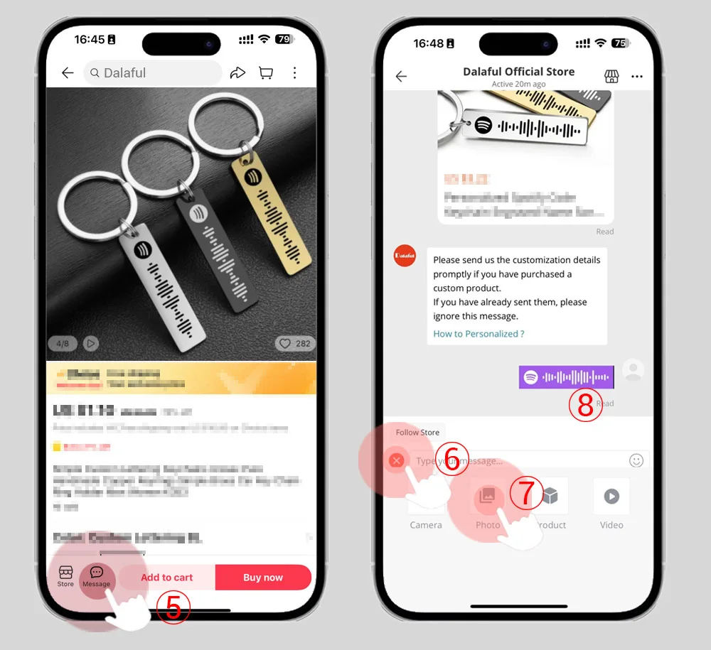 1. Una vez realizado su pedido, envíenos el contenido personalizado en una hora.