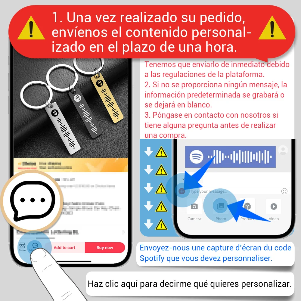 Sé el primero en valorar “Llavero personalizado con código de Spotify, nombre grabado, canción, música, escaneable, regalo para pareja P040”