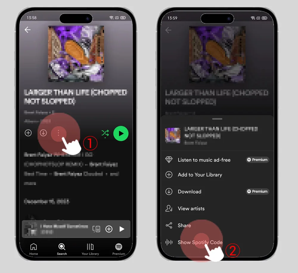 4. Selecciona la opción «Mostrar código de Spotify» en el menú emergente. La app generará un código escaneable para el contenido seleccionado.